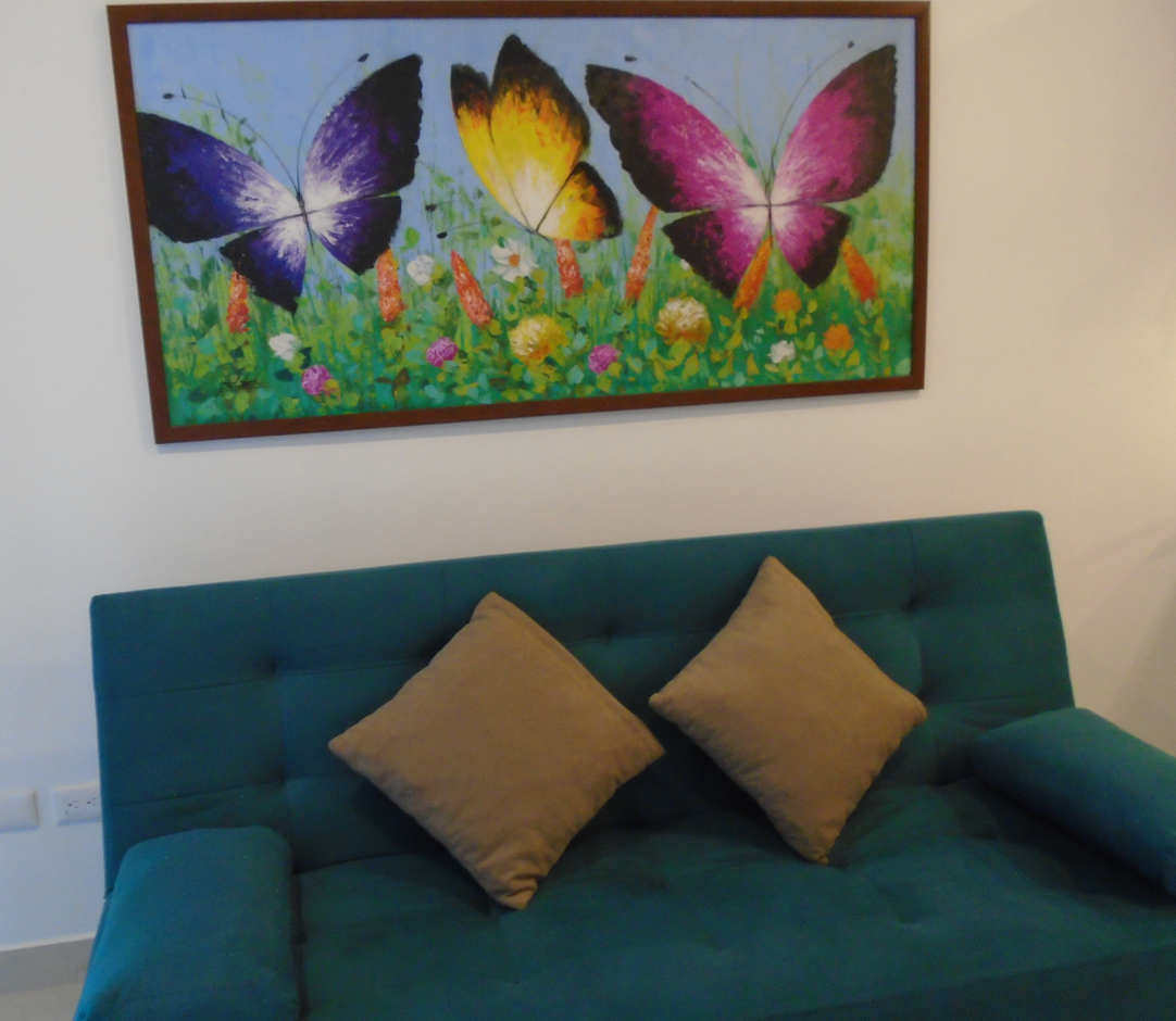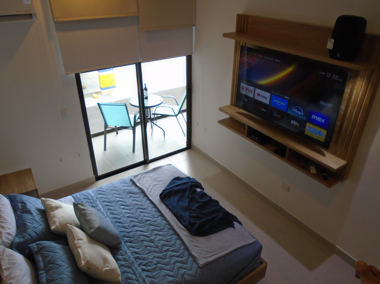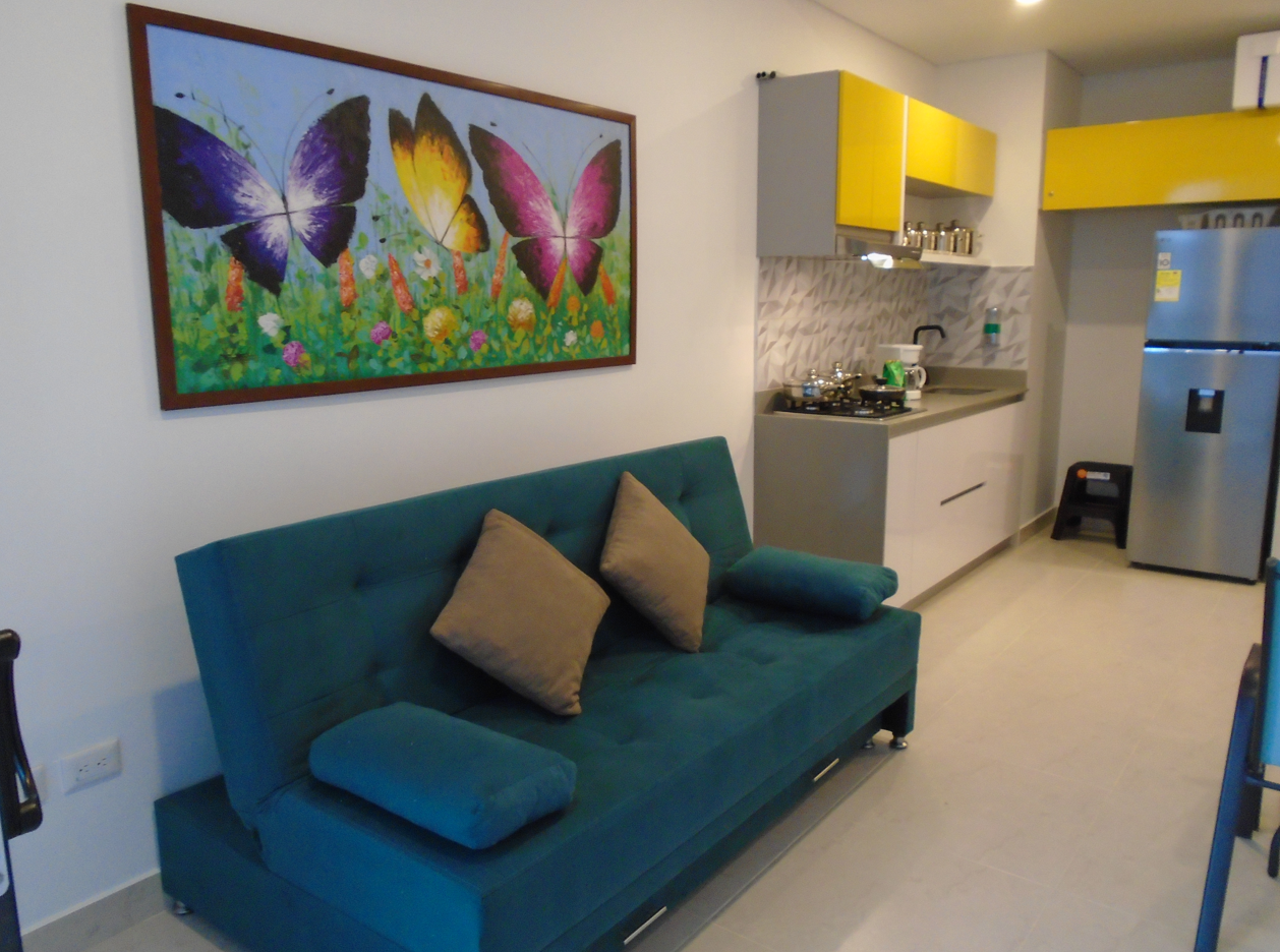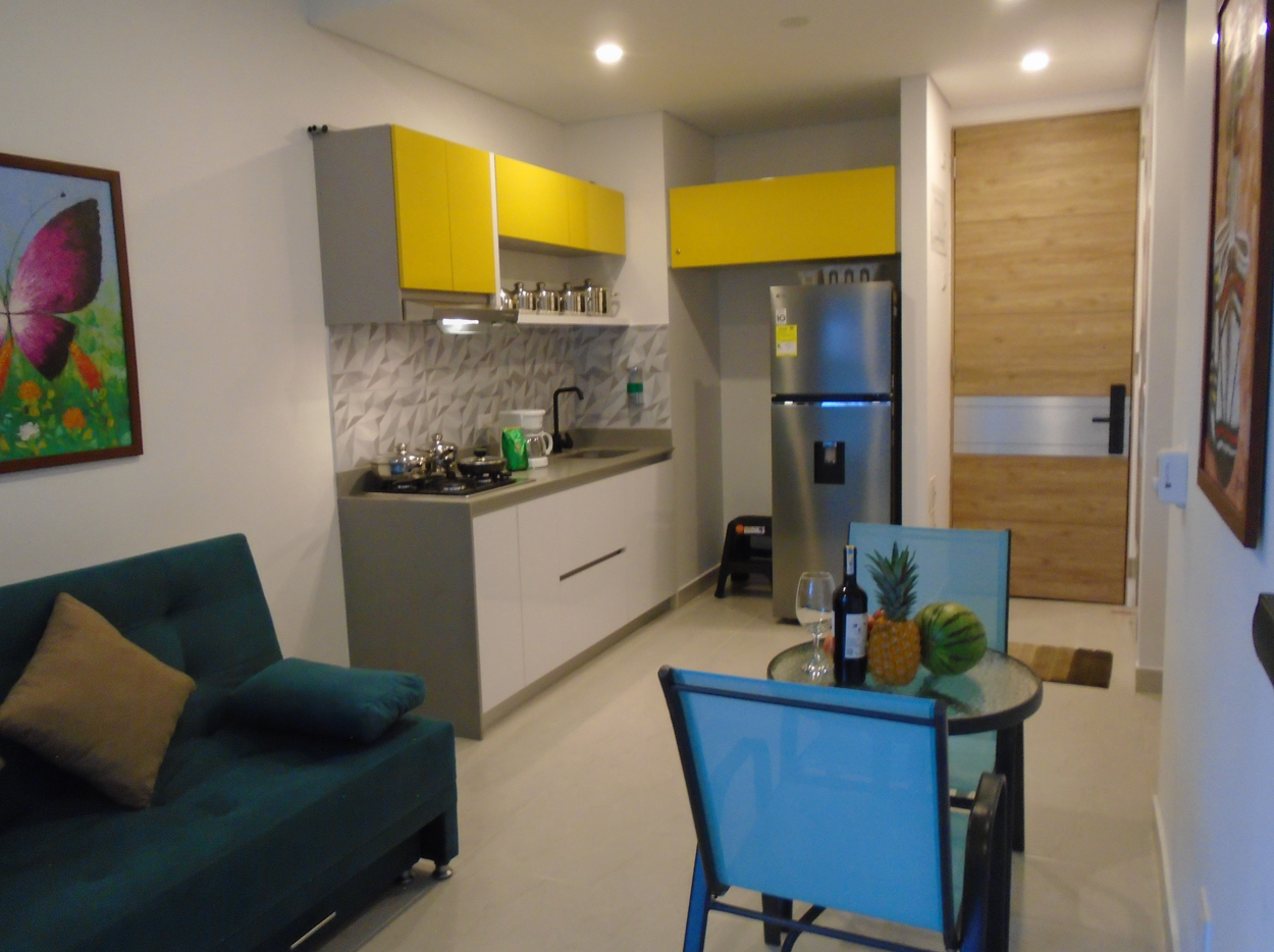 Apartamento 4 piso, de 1 dormitorio independiente, una sala de estar, una cocina equipada con menaje y nevera, salón de ropa, lavadora y 1 baño; toallas y ropa de cama.